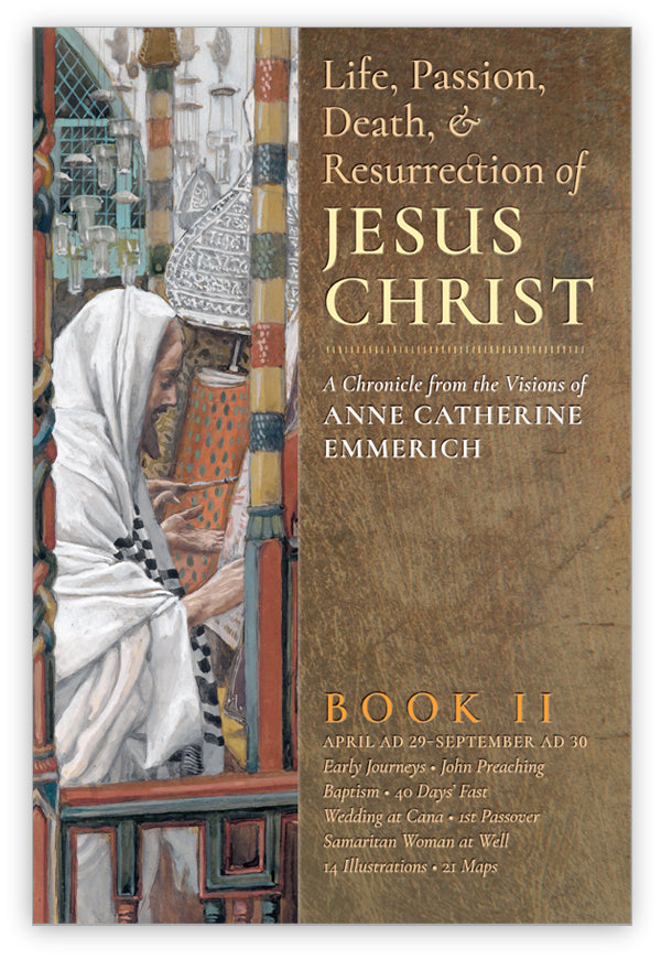 Various editions of the remarkable visions of Anne Catherine Emmerich have been compiled over the years, but only recently (2009) have Brentano’s complete notebooks (in 38 volumes) been published, and this new 4-volume edition benefits greatly from this new resource. Anne Catherine was so attuned to the life of Jesus that her visions encompassed minute details of time and place. Along with other supplements, this definitive edition incorporates a day-by-day chronology and—during the days of Passion—a nearly hour-by-hour itinerary. It contains also 43 detailed maps specially drawn to depict Jesus’s journeys. Many efforts have been made to date events in the life of Jesus, but those offered in this edition differ from all previous efforts in that they derive from the application of modern chronological science to the totality of Anne Catherine’s visions as a coherent whole. In addition, 149 illustrations drawn from the monumental work of the French painter James J. Tissot (1836–1902)—who was himself largely inspired by his Anne Catherine’s visions—are distributed among the 4 volumes. Over the years many have attested to the transformative power of these visions, and on Oct. 3, 2004, Anne Catherine was beatified by Pope John Paul II. It is the publisher’s hope that these visions, so engaging as historical narrative and so replete with spiritual insight, may open a gateway—for the many moderns who have fallen out of connection with the life and teaching of Jesus—to the earthly garden where the Spirit bloomed, and blossoms still.